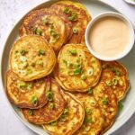 - Serve: Once all pancakes are cooked and warm, sprinkle with the remaining 1/4 teaspoon salt and additional scallions. Serve immediately with optional toppings such as sour cream, shredded cheddar cheese, cooked bacon, or fried eggs for a delicious meal.