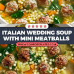 This classic Italian Wedding Soup features tender homemade meatballs simmered in a flavorful chicken broth with fresh vegetables, pasta, and spinach. It’s a comforting, hearty soup perfect for any season, easy to make on the stovetop, in a Crock Pot, or Instant Pot. Serve it garnished with freshly grated Parmesan cheese and enjoy with crusty bread for dipping.