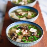 I love prepping this soup the night before because it means less morning hassle. So, slice your mushrooms, bamboo shoots, and tofu, mince the garlic, and grate the ginger. Store the mushrooms, bamboo shoots, garlic, and tofu all together in one airtight container in the fridge; keep the grated ginger in another container so it stays fresh and vibrant. Doing this ahead helps the flavors marry even more by the time you start cooking.