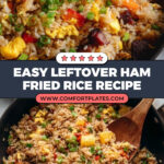 This flavorful Leftover Ham Fried Rice with Pineapple is a quick and easy stir-fry dish that combines the savory taste of diced ham with sweet pineapple and vibrant bell peppers. Perfect for using up leftover rice and ham, it features a delightful balance of sweet and salty flavors enhanced by soy sauce and pineapple juice. Cooked with scrambled eggs and garlic for added richness and aroma, this hearty fried rice makes a satisfying main dish suitable for a simple weeknight meal.