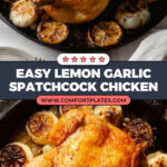This Lemon Garlic Spatchcock Chicken is a simple, flavorful roast chicken dish that delivers juicy meat and crispy, golden skin. The chicken is flattened by removing the backbone, allowing for even cooking, and roasted atop fresh lemon slices and garlic bulbs that infuse the meat with bright citrus and aromatic garlic flavors. Perfect for an easy yet impressive weeknight dinner.