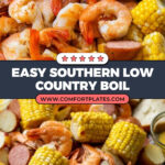 This Southern Low Country Boil is a classic Cajun-inspired seafood feast packed with tender shrimp, smoky sausage, crisp corn, and hearty red potatoes all simmered in a flavorful Cajun-seasoned broth. Perfect for gatherings, this one-pot dish is served with melted butter and toasted baguette for dipping, bringing a taste of the South right to your table.