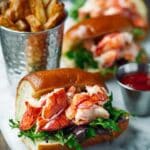 My go-to sides with these lobster rolls are classic New England accompaniments: crispy kettle chips, crunchy coleslaw, or salty dill pickle spears. French fries work wonders too, especially if you like dipping every bite in that tangy mayo-lobster salad combo.