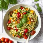 This Mediterranean Orzo Salad with Pesto Recipe is wonderfully flexible. I’ve played around with it many times depending on what I have on hand or what my guests prefer, and it’s always a hit.