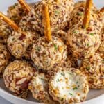 I personally don’t freeze these often because the cream cheese texture changes slightly after thawing, but if you need to, freeze the pecan-coated balls without the pretzel sticks in an airtight container for up to 2 months. Thaw overnight in the fridge before enjoying.
