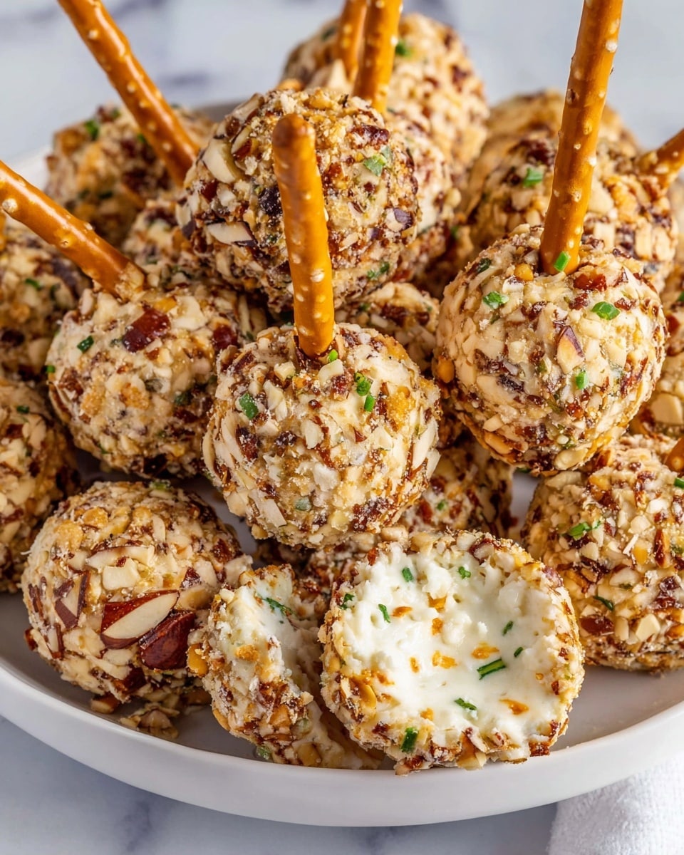 How to Serve Mini Cheeseball Bites with Pecan Coating and Pretzel Sticks Recipe