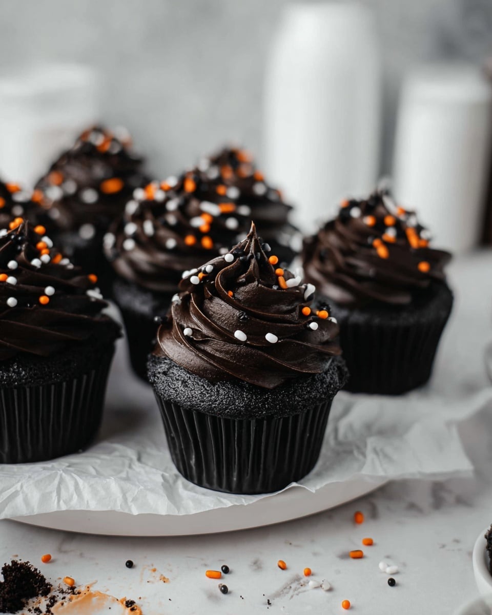 - Deep Black Cocoa Flavor: This recipe uses black cocoa powder, giving the cupcakes a striking color and intense chocolate taste you won’t get from regular cocoa.