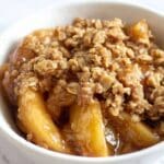 For a dinner party, I like baking this crisp in individual ramekins — everyone gets their own little personal dessert that’s perfectly portioned and looks adorable on the plate. You can even drizzle caramel sauce or a splash of bourbon over the top before serving to impress your crowd. It’s always a showstopper and so easy to whip up.