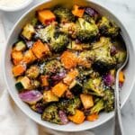 - Add Parmesan and Serve: Sprinkle the roasted vegetables with grated Parmesan cheese if using, and serve hot or at room temperature. Adjust seasoning with additional salt and pepper to taste before serving.