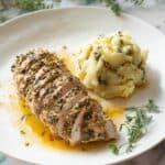 Start by preheating your oven to 350°F (175°C). While it’s warming up, mix your soft butter with freshly chopped sage, thyme, rosemary, grated orange zest, and pressed garlic. Sprinkle in your salt and pepper to taste — this blend is where the magic happens. Pour lemon juice all over your turkey tenderloin and season it with salt and pepper on both sides. Spread your herb butter all over the turkey; it might not stick perfectly because of the lemon juice, but do your best. If you have an hour or more, pop it in the fridge to marinate. Trust me, the flavors deepen beautifully!