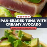 - Arrange Avocado and Serve: Place the sliced avocado on top of the tuna steak in the skillet, then drizzle the remaining sauce over the avocado. Serve immediately for best freshness and flavor.