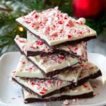 A festive and easy-to-make peppermint bark featuring layers of melted semisweet and white chocolate, infused with peppermint extract and topped with crushed candy canes. Perfect for holiday gatherings or gift giving.