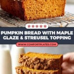 This Pumpkin Bread with Maple Glaze is a moist, flavorful loaf perfect for autumn or anytime you crave a spiced treat. Topped with a crunchy pumpkin spice streusel and drizzled with a sweet maple glaze, it combines traditional fall flavors into a deliciously comforting bread that’s easy to make and sure to impress.