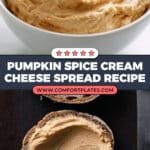 - Serve: Spread the pumpkin spice cream cheese on bagels, toast, or use it as a dip for fruit. Enjoy immediately or store refrigerated in an airtight container for up to 5 days.