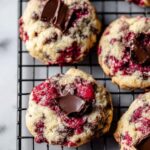 These Raspberry Chocolate Chunk Cookies are a delightful blend of rich dark chocolate and tart frozen raspberries, baked into soft, chewy cookies. The combination of sweet chocolate chunks and juicy raspberries creates a wonderful balance of flavors perfect for any dessert lover.