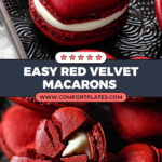 On Valentine’s Day, I arrange these red velvet macarons in a heart shape on a serving platter lined with parchment, garnishing with rose petals and small chocolate curls. It’s a showstopper that makes the moment feel extra special. For gift-giving, pack them in stacked clear boxes with a ribbon—total crowd-pleaser!