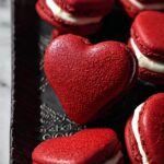 On Valentine’s Day, I arrange these red velvet macarons in a heart shape on a serving platter lined with parchment, garnishing with rose petals and small chocolate curls. It’s a showstopper that makes the moment feel extra special. For gift-giving, pack them in stacked clear boxes with a ribbon—total crowd-pleaser!
