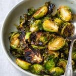 - Adjust and Serve: Taste the roasted Brussels sprouts and adjust seasoning with more salt or pepper if desired. Serve warm as a delicious side dish.