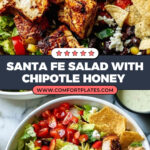 This flavorful Santa Fe Salad combines seasoned, pan-cooked chicken breast with fresh veggies, black beans, quinoa, and a zesty chipotle honey vinaigrette. Topped with cotija cheese and crunchy tortilla chips, this salad is a satisfying and colorful meal, perfect for a light lunch or dinner that brings vibrant Southwest flavors to your table.