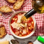 When you’re ready to eat, drizzle some good olive oil over the top and sprinkle with freshly grated Parmigiano or Locatelli cheese. Serve alongside a big hunk of crusty bread for sopping up every last bit of sauce – that’s where the magic happens. Oh, and if you’re like me, a cold beer on the side seals the meal perfectly!