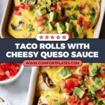 Preheat your oven to 375°F (190°C) and bake the rolls for 30 to 35 minutes until golden brown and irresistible. As soon as they’re out of the oven, prepare the queso sauce while the rolls cool slightly. Melt butter in a saucepan over medium heat, whisk in flour, and cook just 30 seconds. Gradually add milk, whisking until the sauce thickens. Stir in taco seasoning and shredded cheddar until you have a silky cheesy sauce. This warm queso drizzled over the top adds that wow factor every time.