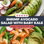 The ingredients for this Shrimp and Kale Salad with Avocado Recipe are simple but thoughtfully chosen. I love using baby kale because it’s tender and not too bitter, making it perfect for salads. The shrimp cooks quickly and adds protein without overwhelming the fresh veggies, while creamy avocado balances the crisp textures beautifully.