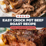 This Easy Crock Pot Beef Roast recipe is a classic slow cooker pot roast that delivers tender, juicy, and flavorful beef with minimal prep. Perfect for comforting family dinners, the beef is seasoned simply with garlic, thyme, salt, and pepper and slow-cooked on a bed of onions in beef broth for a rich, savory meal.