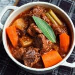 Yes, you can make this on the stovetop in a heavy-bottomed pot or Dutch oven. Brown the beef first, then let it simmer gently on very low heat for 3-4 hours until tender. Keep an eye on liquid levels so it doesn’t reduce too much.