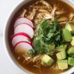 This Slow Cooker Chicken Posole Verde is a comforting Mexican stew featuring tender chicken simmered in a vibrant, tangy green sauce made from charred poblanos, Anaheim peppers, tomatillos, and aromatic spices. Enhanced with hominy and garnished with fresh radish, cilantro, lime, and creamy avocado, this dish offers a perfect balance of smoky, savory, and fresh flavors, ideal for a wholesome family meal.
