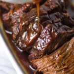 - Serve: Carefully remove the meat from the slow cooker and place it on a cutting board. Gently separate the meat from fatty sections, discarding excess fat. Arrange the large chunks of meat on a platter or return to the slow cooker for serving alongside the vegetables and thickened gravy.