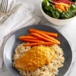 If you like your honey mustard sauce a little thicker, stir in 2 tablespoons of potato starch about 30 minutes before the cooking ends. It helps thicken the sauce nicely without overpowering the flavor. I usually skip this unless I’m serving the chicken over rice or mashed potatoes and want a saucier plate.
