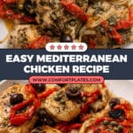 This Slow Cooker Mediterranean Chicken recipe features tender, juicy boneless chicken thighs simmered with roasted red peppers, kalamata olives, onions, capers, and Italian seasoning. The dish is enhanced with a bright lemon-garlic marinade and makes an effortless, flavorful meal perfect for busy weeknights or meal prep.