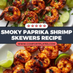 Smoky Paprika Shrimp Skewers feature large shrimp marinated in a flavorful blend of sweet and smoked paprika, cumin, garlic, lime juice, and olive oil, then grilled to perfection. This quick and easy recipe delivers a smoky, spicy, and tangy dish perfect for a summer barbecue or a tasty appetizer.