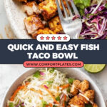 A flavorful and quick Fish Taco Bowl featuring tender Cajun-seasoned fish fillets served over a vibrant cabbage slaw, drizzled with a spicy sriracha mayo sauce. Perfect for a light and satisfying meal ready in just 15 minutes.