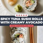 A vibrant and flavorful Spicy Tuna Sushi Roll made with canned tuna, creamy mayonnaise, spicy sriracha, and crunchy fresh vegetables, wrapped in nori seaweed with seasoned sushi rice. Perfect for sushi lovers seeking a quick and delicious homemade roll.