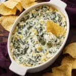 I’ve tried freezing this dip a couple of times and found it freezes well, though the texture is slightly different after thawing—the spinach can get a bit softer. To freeze, place it in a freezer-safe container and use within 2 months. Thaw overnight in the fridge before reheating.