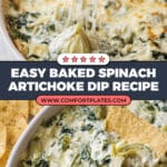 This creamy Spinach Artichoke Dip is a warm, cheesy appetizer perfect for gatherings and snacking. Featuring a delightful blend of cream cheese, sour cream, mozzarella, parmesan, tender artichoke hearts, and flavorful spinach, baked until melty and bubbling. Serve it with tortilla chips, crackers, or toasted baguette slices for an irresistible party starter.