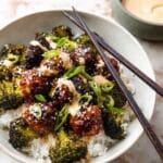 These Weeknight Sticky Honey Garlic Meatballs are a quick and wholesome dinner option featuring tender turkey, chicken, or beef meatballs glazed in a sweet and savory honey garlic tamari sauce. Paired with lightly charred broccoli and a sprinkle of toasted sesame seeds, this dish balances comforting flavors with nutritious ingredients, perfect for a satisfying family meal.