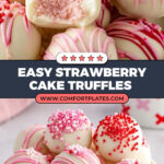 Delight in these Strawberry Cake Truffles, a perfect bite-sized dessert combining moist strawberry cake with creamy cream cheese, coated in smooth vanilla and pink candy melts. These colorful, festive truffles are easy to prepare, featuring a unique heating step to ensure safety and a luscious texture accented with optional sprinkles for a fun finish. Ideal for parties, gifting, or a sweet treat anytime.