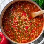 You’ll find that this soup works wonderfully for feeding a family or meal prepping for the week ahead. I first tried this recipe on a whim when I wanted the classic taste of stuffed peppers but lacked time to assemble individual peppers. Since then, it’s been a staple because it’s flexible, delicious, and only gets better the next day!