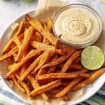 Plate up your sweet potato fries alongside that dreamy spicy chipotle lime dipping sauce. I love serving this fresh and warm so the fries are crispy and the dip is cool and refreshing—pairs perfectly!