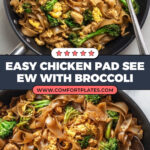 Pad See Ew is a beloved Thai stir-fried noodle dish featuring chewy wide rice noodles, tender chicken thighs, and crunchy broccoli florets all tossed in a savory and slightly sweet soy-based sauce. Enhanced with garlic, eggs, and a balance of dark and oyster soy sauces, it’s a hearty and flavorful meal that brings authentic Thai street food into your home kitchen.