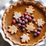 I almost always top the pie with those sugared cranberries and homemade pie crust leaves for a festive look. A dollop of freshly whipped cream is my absolute favorite finishing touch — the creaminess cools the warm spices perfectly and adds just the right balance.
