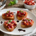 - Serve: If desired, drizzle balsamic glaze over the bruschetta for a sweet and tangy finish. Serve immediately while the bread is warm and crisp for the best texture and flavor experience.