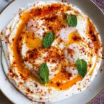 - Assemble the Dish: Spread a generous layer of the garlicky herb yogurt on a serving plate or shallow bowl. Place the poached eggs on top of the yogurt. Drizzle the spiced butter sauce evenly over the eggs. Garnish with additional fresh mint, dill, and a sprinkle of black pepper before serving.