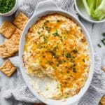 I love garnishing this crab dip with a generous sprinkle of fresh chopped chives because the green makes such a pretty contrast and adds a mild oniony brightness. Sometimes, I add a few lemon wedges on the side—because a little fresh squeeze of lemon just wakes up the flavors beautifully.
