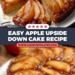 Let the cake cool in the pan for about 5 minutes once it’s out of the oven. Then place your serving plate on top of the cake pan and carefully invert it to release the cake with the apple topping on display. This part might seem tricky at first, but once you get the hang of it, it’s super satisfying to see how gorgeous it looks!