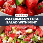 I personally don’t recommend freezing this salad since the watermelon’s texture gets mushy and watery after thawing. It’s just not the same, so I try to make only what I’ll comfortably eat within a day.