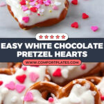 Delightfully sweet and salty White Chocolate Pretzel Hearts are a perfect treat for Valentine’s Day or any special occasion. Crispy mini pretzels topped with creamy melted white chocolate almond bark and adorned with festive heart sprinkles create an irresistible bite-sized snack that’s easy to make and sure to impress.