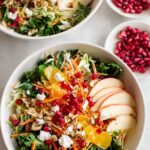A vibrant and refreshing Winter Salad featuring a mix of kale, cabbage, crisp apples, and spring greens, topped with tangy goat cheese and pomegranate arils. Tossed in a zesty red wine vinegar dressing with a hint of honey and Dijon mustard, this salad is perfect for a healthy, flavorful meal or side dish during colder months.